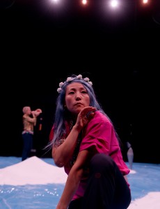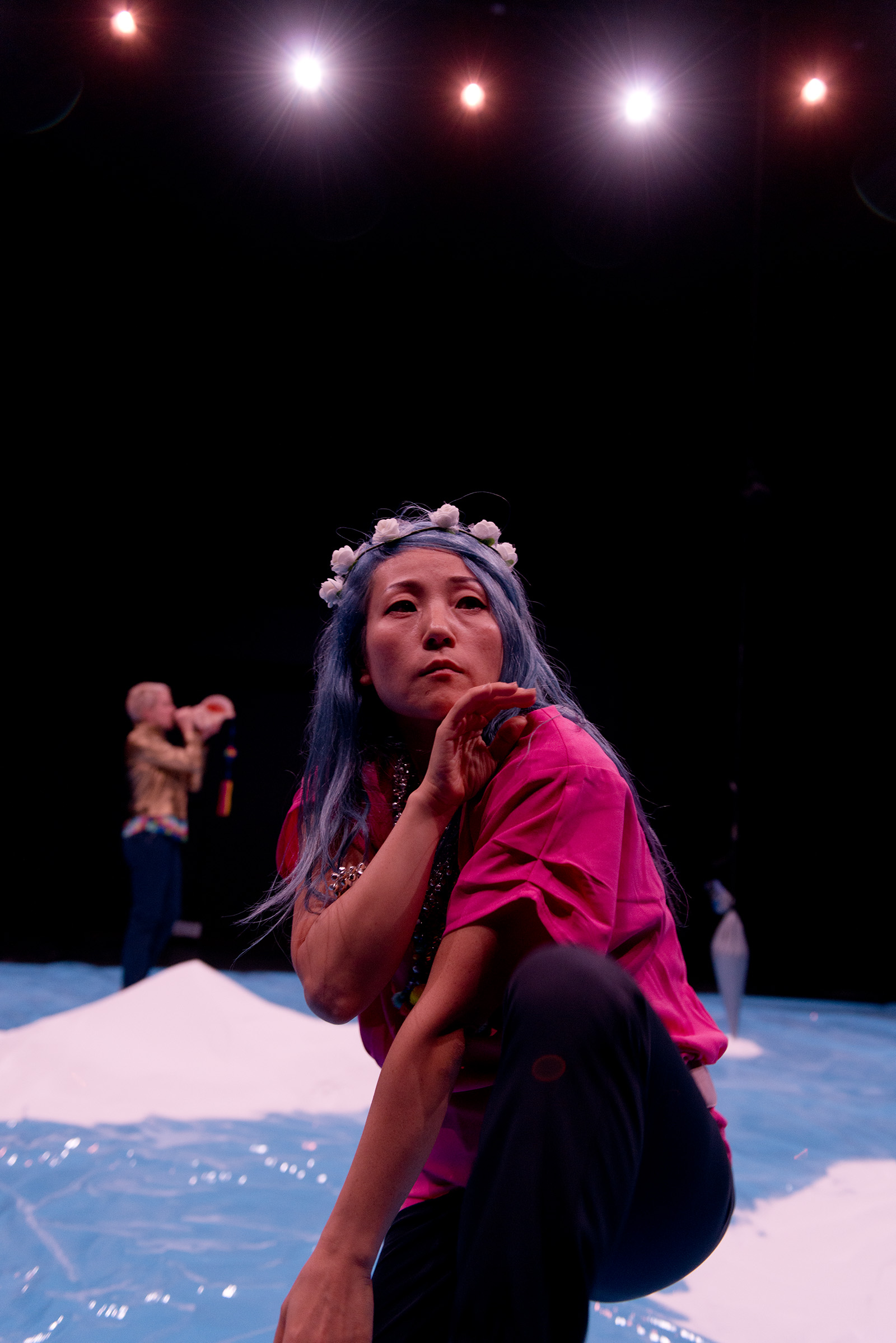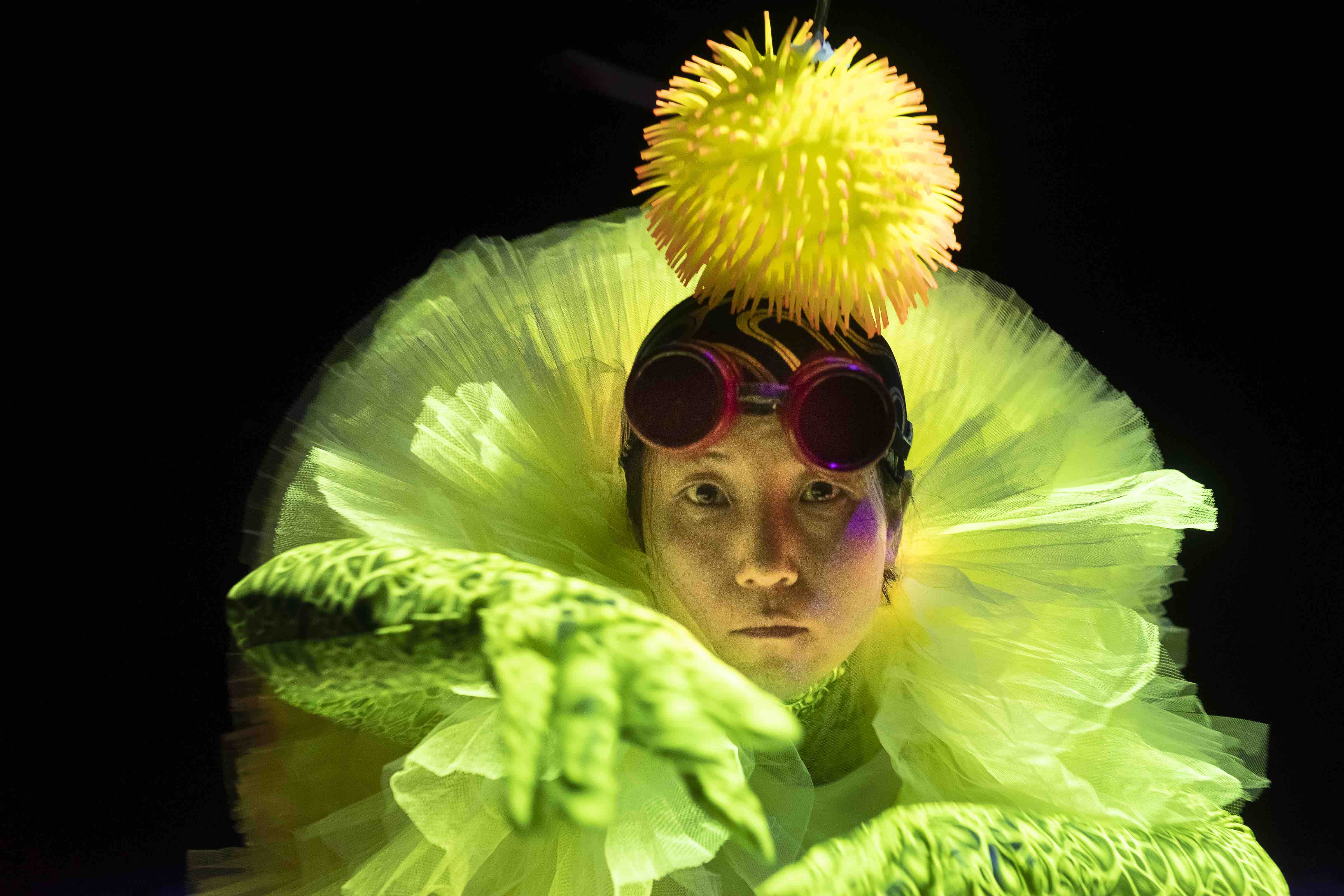 Ce qui réunit le travail de Céline Masson et de YoungSoon Cho Jaquet est l’attention portée à la matière, celle qui est palpable entre ses doigts – mise en valeur notamment par les costumes, les accessoires et toute la scénographie. Les spectateurs assistent à une cérémonie peu ordinaire, où les sens sont aiguisés par le jeu des matières, où les ondes lumineuses de Joana Oliveira et acoustiques de Jérémie Conne se développent diffusément, où la technologie produit des outils magiques et thérapeutiques.