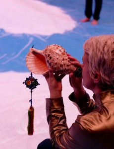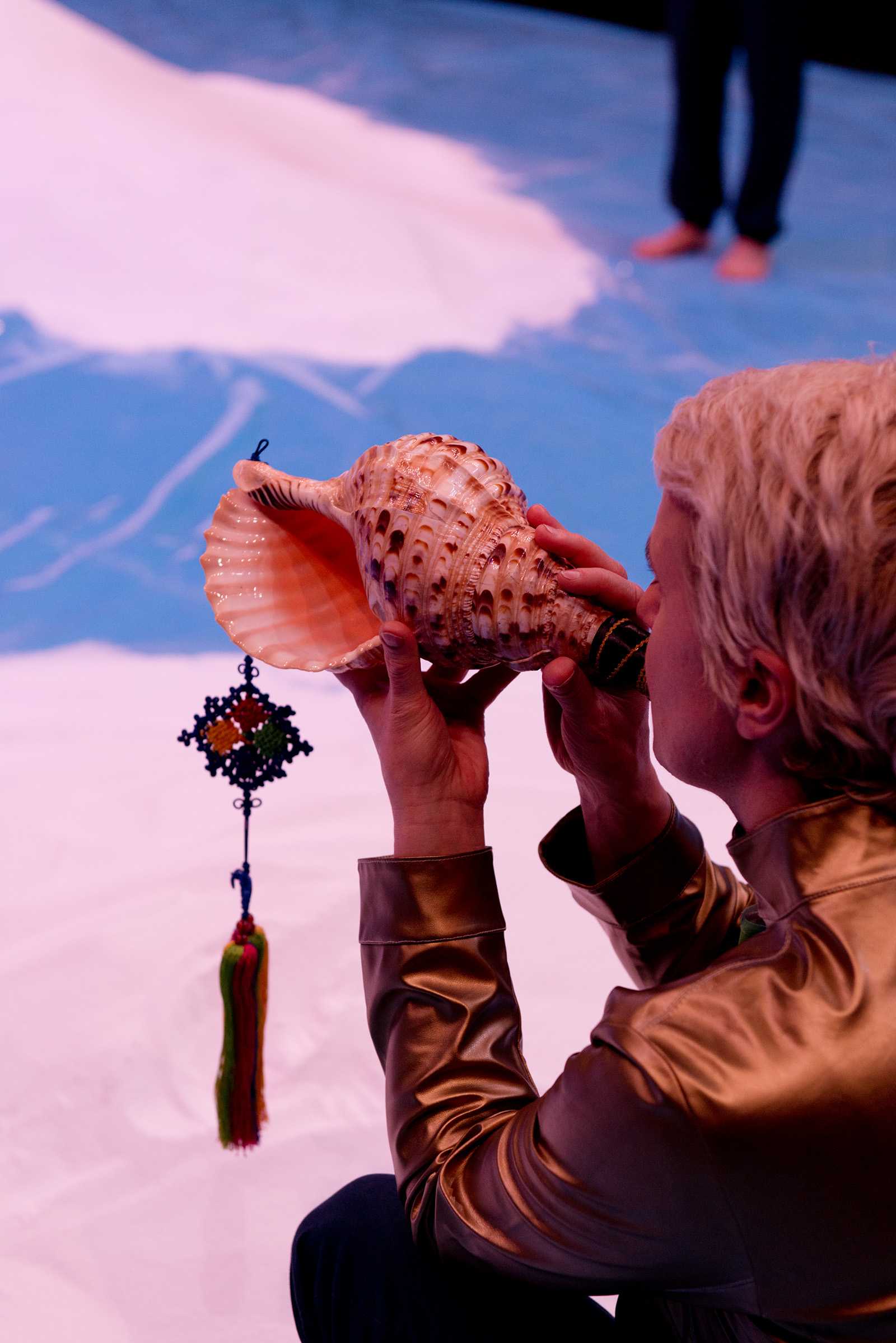 YoungSoon Cho Jaquet, en maîtresse de céréonie, dirige le dispositif magique et danse une transe sauvage. Egalement en scène, Céline Masson, son assistante dévouée, est en charge des matériaux et des instruments cérémoniels destinés à guérir.