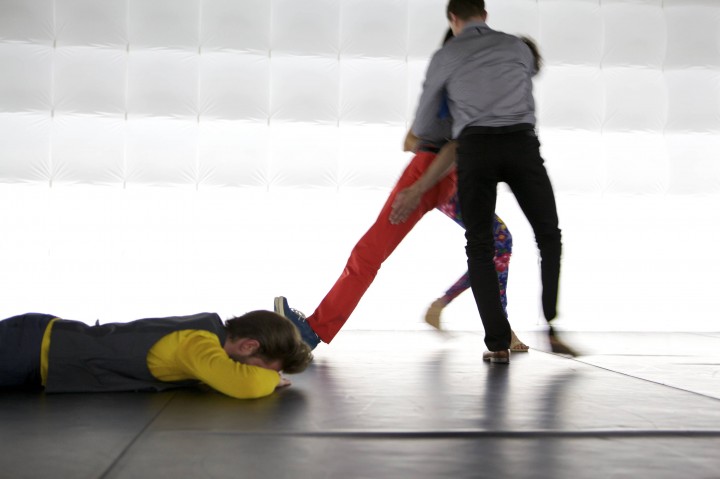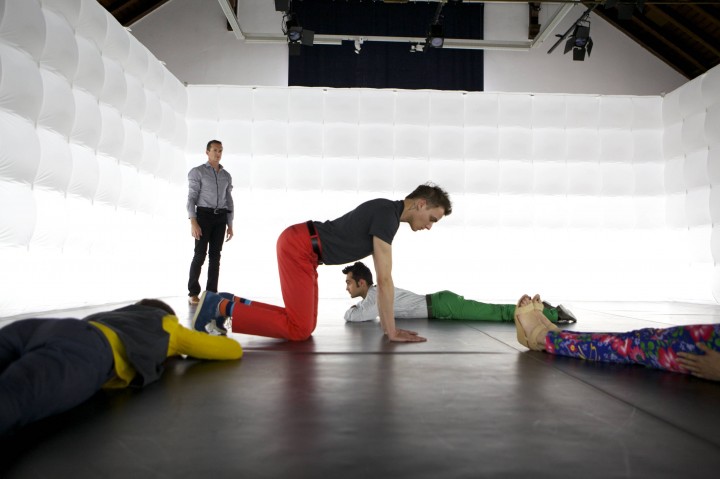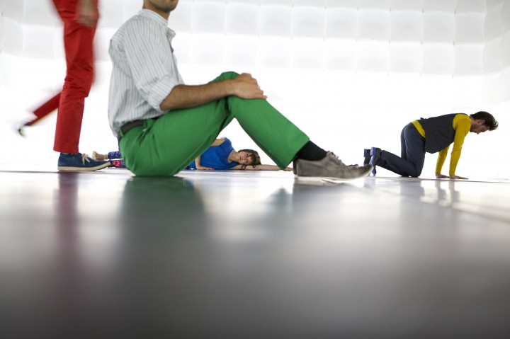 Elle n'a pas son pareil pour rendre l’ordinaire étrange et le familier extraordinaire, pour s’amuser avec les corps qu’elle transforme à l’envi. La chorégraphe et interprète YoungSoon Cho Jaquet a plus d’un tour dans son sac pour imaginer des univers loufoques et poétiques. Aujourd’hui, c’est le cadre même de la représentation qu’elle revisite, nous invitant à pénétrer dans une structure insolite, sorte de grand cube gonflable blanc. A son approche, on l’entend bourdonner ; elle produit sa propre luminescence, son sol est brut. Assis dans ce « Hic » (Ici), on découvre un espace peuplé de créatures mi-homme mi-objet, sorte de mobilier délirant qui se déplace, se recompose et se disloque. Les interprètes se métamorphosent avec humour en objets du quotidien, donnant peu à peu vie à cet espace où l’on se sent de plus en plus comme à la maison.